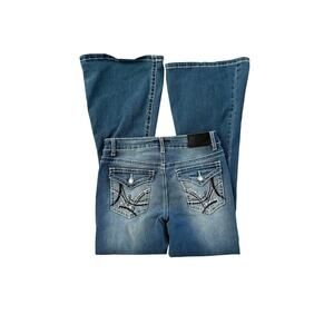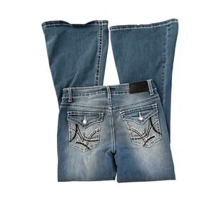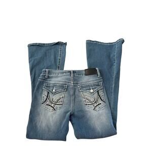 True Luck Y2K Flare Jeans 7/8 Star Embroidery 27x29.5 Low Rise Denim