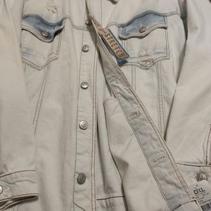 Big and tall True Nation white jean jacket with hints of blue. Very stylish