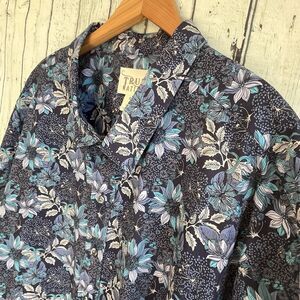 True Nation Mens Button Up Floral Shirt Size 5XL Vacation Beach Casual Blue
