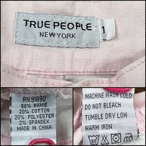 Juniors pink studded capri jeans from True People New York. Zip fly, button closure. Studded back pockets. These are a pale pink. The best representation of the color is the photo with the double buttons (7). Due to light & screen variations, colors may vary slightly from the images