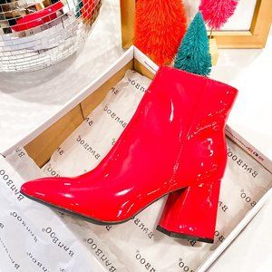 True Red Faux Patent Leather Ankle Booties Boot Block Heel Pointed Toe Zip