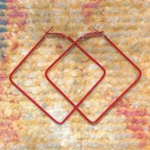 True Red Retro 80’s Large Stainless Steel Square Hoops Earrings NWT