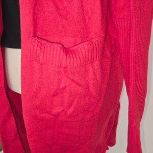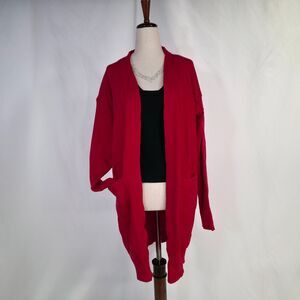 True Red Soft Open Cardigan with Pockets & Fitted Sleeves, Size Large