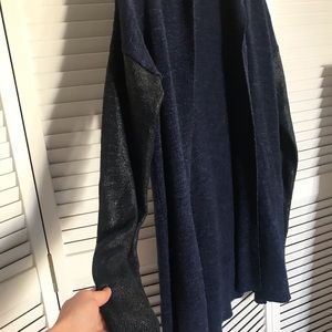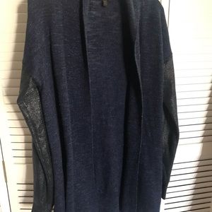 Navy blue with a sparkle, sleeves have a leather look to them.