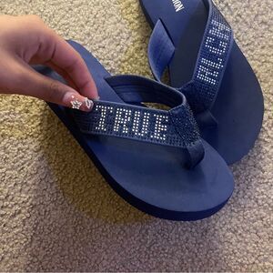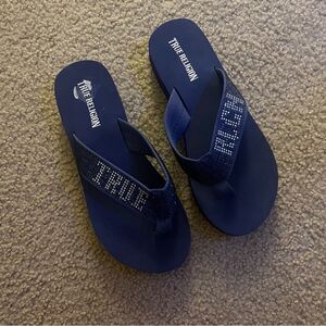 True Religion Amayah Bling Navy Blue Flip Flops Sandals Slide