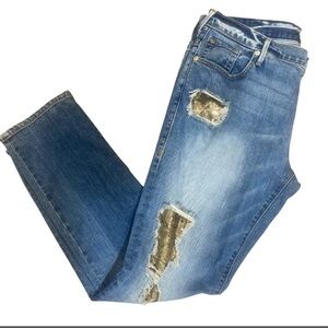 True Religion Audrey Slim Boyfriend Jeans Sz 29 Distressed Snake Print Patch USA