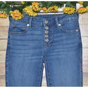 These True Religion Becca bootcut jeans offer a flattering mid-rise fit and a stylish medium wash. With a button fly closure, they combine a classic cowgirl look with modern comfort and stretch. Perfect for any casual occasion.