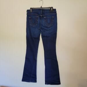 Add intrigue to your denim collection with the True Religion Becca flare jeans. Featuring a unique twisted seam to the flared leg, the jeans add a new dimension to classic denim. The five pocket design offers fully functional pockets and logo stitching to the rear, offset by branded metal hardware. For an ultra feminine silhouette opt for the Becca twisted flare jeans from denim specialists True Religion.