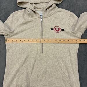 True Religion Beige Half-Zip Hoodie Sweatshirt Kangaroo Pocket Women's Small