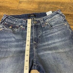 True Religion Billie Mid Rise Straight Jeans Pink Stitch Pockets Women’s 28x33