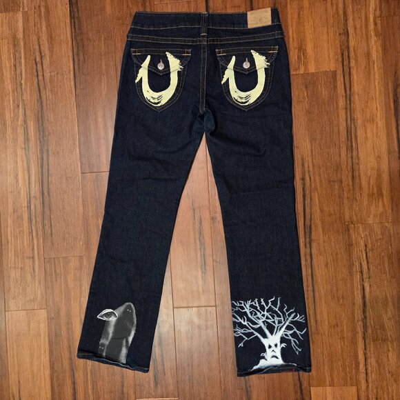 True Religion Billie Straight Y2K Jeans Painted Horseshoe Custom Art
