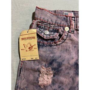 True Religion Billy Big T Shorts Mens 40 Pink Denim Distress USA MSRP $455 New.