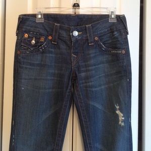 Medium/dark wash, slightly distressed, low-rise, straight leg, worn once, perfect condition!! Best offer (they're too small for me!!)