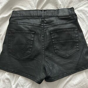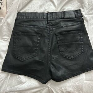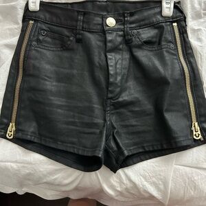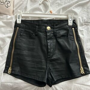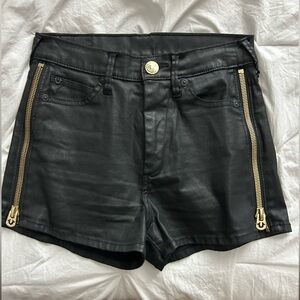 True Religion Black Faux Leather Shorts with Gold Accents Size 4