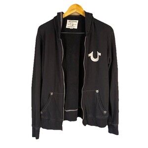 True Religion Black Full Zip Sweatshirt W/ Stitching S Graphic Grunge BigT- Read
