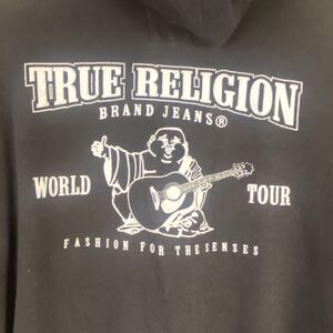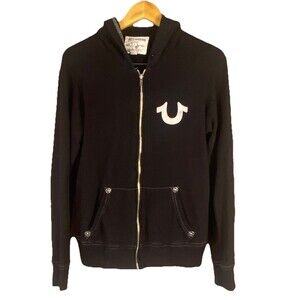 True Religion Black Full Zip Sweatshirt With Stitching Size Small BigT. The strings in hood are missing!