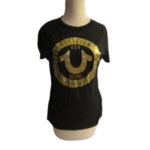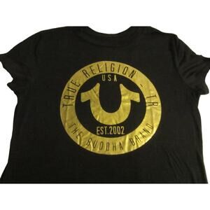 True Religion Black Gold Logo Graphic Tee The Buddha Brand USA Large