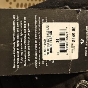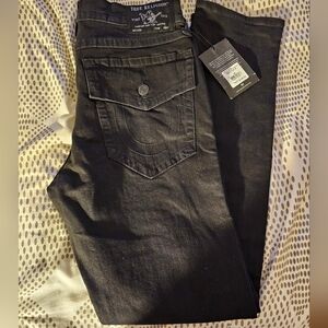Experience the perfect blend of style and comfort with these True Religion black slim jeans. Crafted from high-quality denim, they offer a sleek silhouette and a timeless look. Ideal for any casual outing, these jeans are a wardrobe essential.