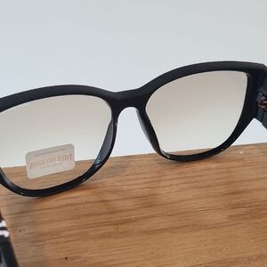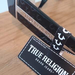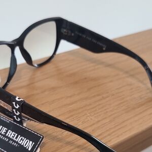 Stylish True Religion sunglasses in sleek black. Very light tint to glasses.