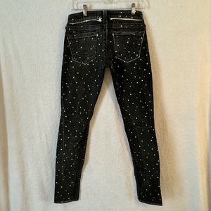 True Religion Black w/ White Polka Dot Stella Jean, size 27, rise: 7.5", length: 38". Stretchy and super cute. Worn 1-2 times MAX. Practically new, smoke-free home.