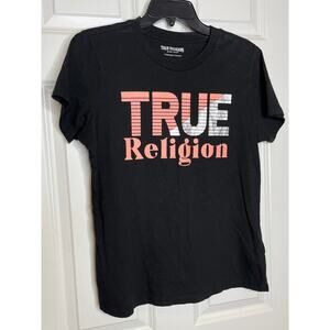 True Religion Black with Pink Graphic Logo Short Sleeve Tee XL
