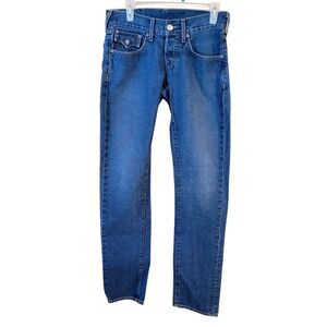 True Religion Women's Blue Jeans – Size 28 | Vintage Button Fly, Flap Pockets, 5-Pocket Style Retail $285