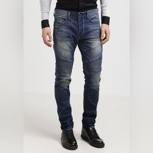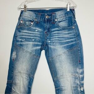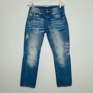 True Religion Blue Acod Spot Washed Slim Moto Jeans 30W