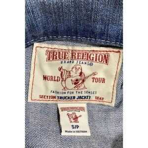 ๐ True Religion Blue Distressed Chain Detail Trucker Jacket ๐