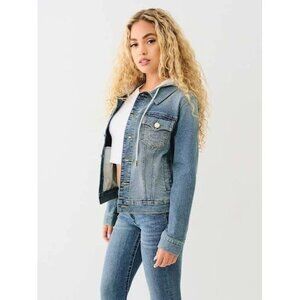 True Religion Blue Denim Trucker Hoodie Jacket XS - New with Tags
