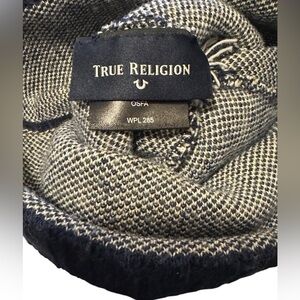 True Religion Blue Gold White Beanie Pom Pom Hat Size OS Unisex