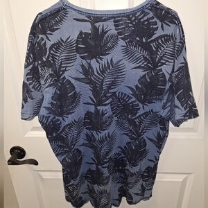 This is a True Religion blue ombre curved hem tropical t-shirt in a men's 2XL. It is pre-loved and showing some gentle wear (see pics). Streetwear, casual, beachy, tropical, vacation wear.
