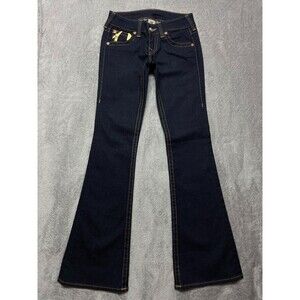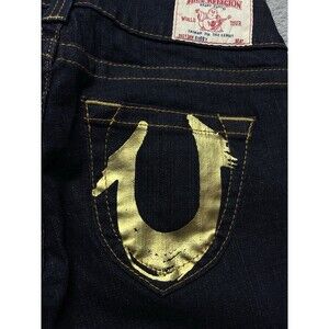 True Religion Bobby Gold Foil Painted Pockets Tall Women's Low-Rise Bootcut Jeans Size 28