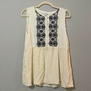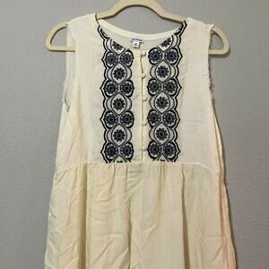 True Religion Boho Cream Sleeveless Round Neck Embroidered Tunic Blouse Sz S