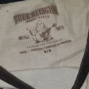 True Religion Boy's size 6 60% cotton 40% polyester t-shirt. Please go by my description for size. In excellent condition from a smoke free home.
