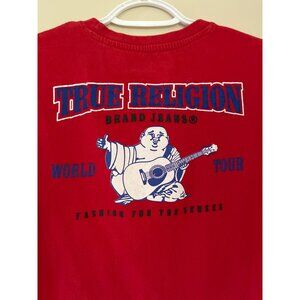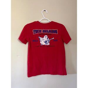 True Religion Boys Medium Red T-Shirt Top Buddha Cotton Blend Short Sleeve