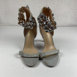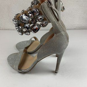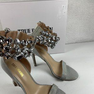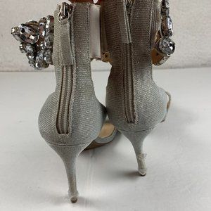 True Religion Braelynn Ankle Wrap Dress Heels 7.5M Jewel Embellished Silver 7963