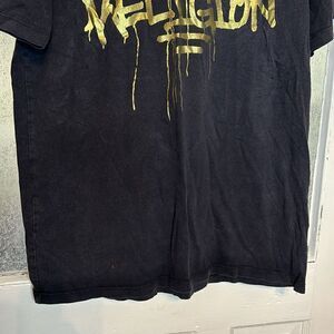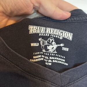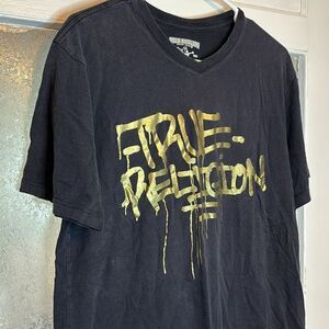 True Religion Brand Jeans Black and Gold Graffiti Style Short Sleeve Tshirt Med