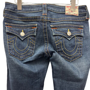 True Religion Brand Jeans Joey Low Rise Denim Blue Flare Dark Pants Size 27