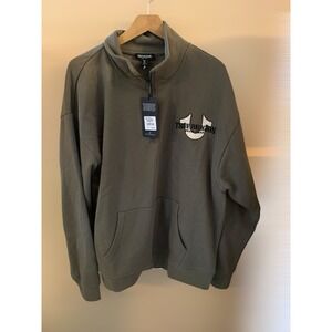 True Religion Brand Jeans Relaxed Mock Quarter Zip Kalamata Pullover Mens M NWT