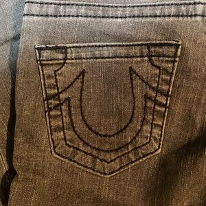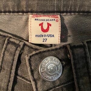 True Religion Brand Jeans, Sz 27, faded grey with black stitching