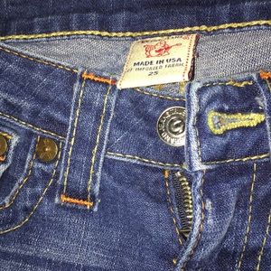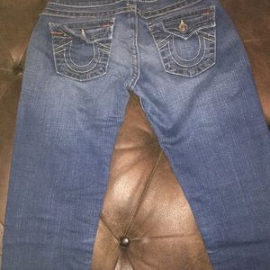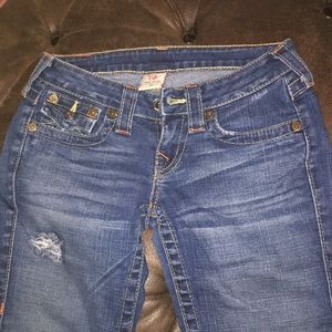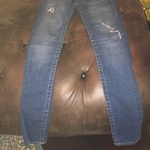 Trbj jeans. Gently worn. Great condition. Size 25. Style-Julie. Medium blue with distressed detail on the legs.
