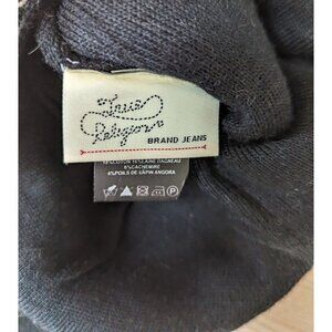 True Religion lambs wool/cashmere cotton blended fabric in black and brown striped pattern with logo embroidered on ear flaps.