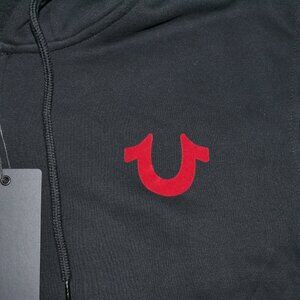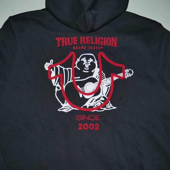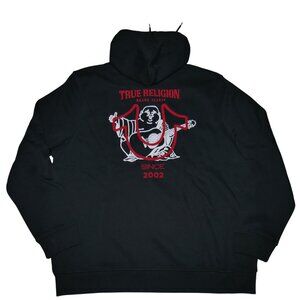 True Religion Buddha Hoodie Men's Size 3XL Sweatshirt Black Red Flocked Logo NWT