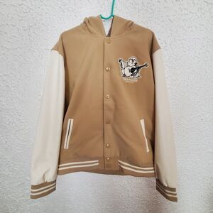 True Religion Buddha Logo Two Tone Varsity Letterman Jacket Men’s XL Leather NWT