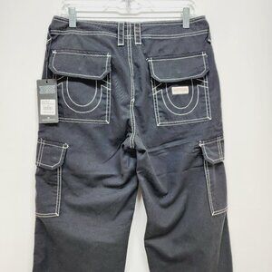 True Religion Cargo Pant Women Jet Black Size 27 Wide Leg Pockets New