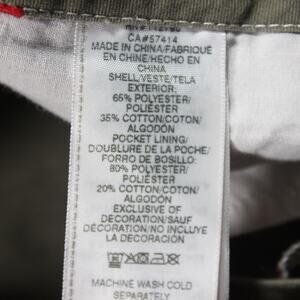 Fabric: 65% Polyester / 35% Cotton (pocket lining 80% Poly / 20% Cotton)