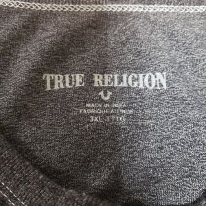 Charcoal tee with bold skull graphic. True Religion branding. Casual and cool style. Softstyle and Comfy.. Shirt says 3x on neck Label but Fits like an XL..At the time I tried this Tee on I wore an XL, ran very small I like the shirt I sized up... twice!