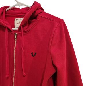 True Religion Classic Full Zip Hoodie Sweatshirt Graphic Print Casual Red Large