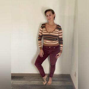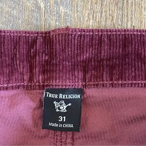 True Religion Corduroy Pants 31 Waist Wine Burgundy Stretchy Chic