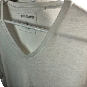 True Religion Cotton Tee Men XL White Vneck Short Sleeve